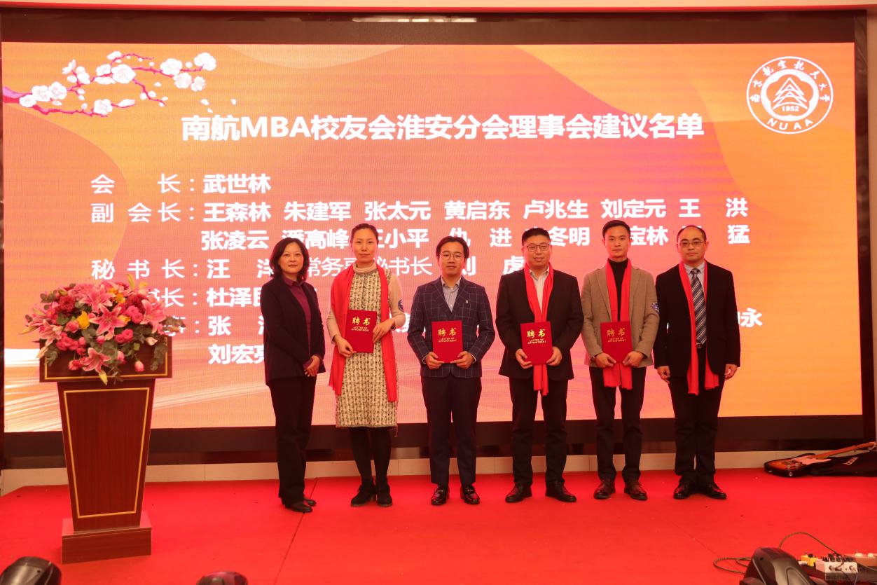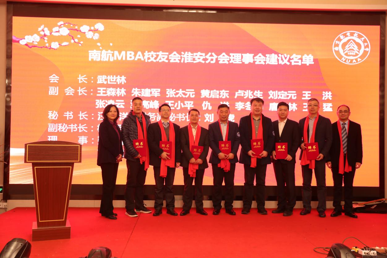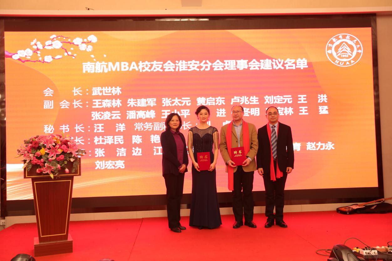 12月28日,江南体育 MBA校友会淮安分会成立大会在淮安成功召开。淮安市教育局局长张元贵,淮安市人力资源与社会保障局副局长王乃岩,淮安市人才中心主任陈朝晖,淮安市就业管理中心副主任刘兆尚,淮安天士力药业副总经理杨国军,万香科技股份有限公司副总经理陈兆钢,淮安经济开发区热电有限公司常务副总经理张德善,淮安柴米河农业科技股份有限公司王其传,南航党政办/发展联络部副部长、校友总会副秘书长张钟勤,江南体育官网 副院长王子龙,党政办/发展联络部校友会办公室主任单晶,MBA教育中心执行主任、南航MBA校友会秘书长杜刚,MBA教育中心学生工作与职业发展办公室主管祝少琪,经管院校友工作秘书许志卓以及淮安各界200多位校友代表欢聚一堂,共同庆祝南航MBA校友会淮安分会的成立。
