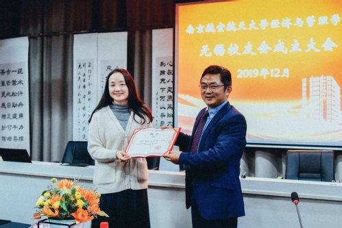 紧接着,涂志宏宣布江南体育 无锡校友会第一届理事会成员名单,无锡市三杯茶公益发展中心理事长陈君怡当选会长,江南大学商江南体育 副院长王育红当选副会长,江苏蓝航灏宇科技服务有限公司总经理陈剑当选秘书长,江南大学商江南体育 教师刘震当选副秘书长。周德群为理事会成员颁发聘书,并宣布江南体育 无锡校友会正式成立。