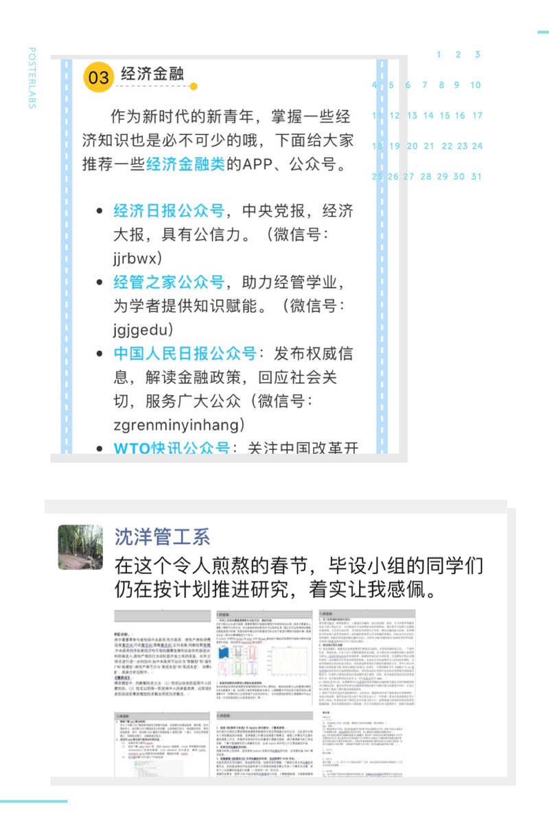 辅导员一方面积极响应学校对家庭经济困难学生的应急资助工作,做好关爱帮扶工作,一方面通过微信公众号、消息群积极发布经济金融公众号、APP等专业学习渠道,征集学生的创意宅生活,让学生宅而不慌,将无聊变“有聊”。