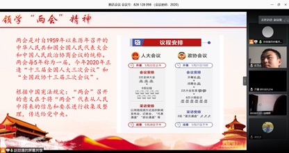 5月28日中午,江南体育官网 2018级团总支开展“云端模拟两会”主题活动,辅导员许乃元、2018级全体团支书、学生代表参加了本次会议。