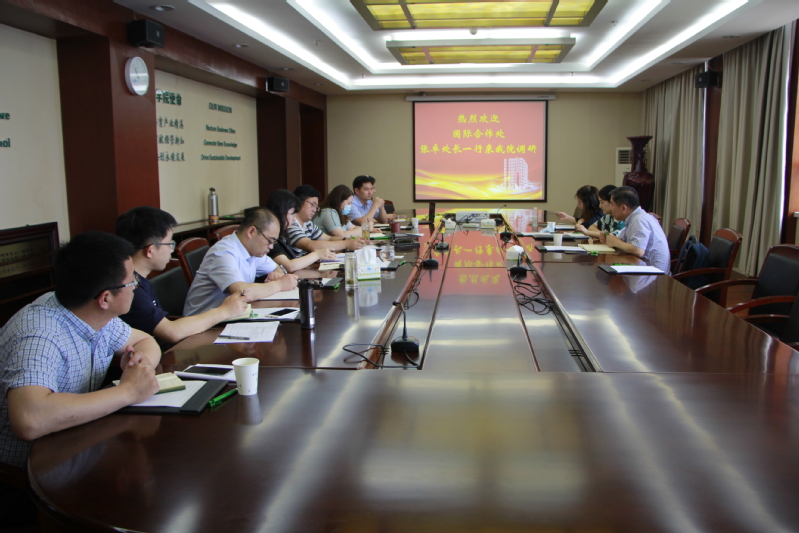 6月17日国际合作处处长张卓、副处长沈敏、综合事务科科长祖语嫣一行来江南体育官网 调研,江南体育官网 党委书记焦宏图、院长周德群、院党委副书记涂志宏、副院长王子龙、王群伟、谢乃明、院长助理陆珩瑱、院国际合作秘书许志卓参加了此次调研。