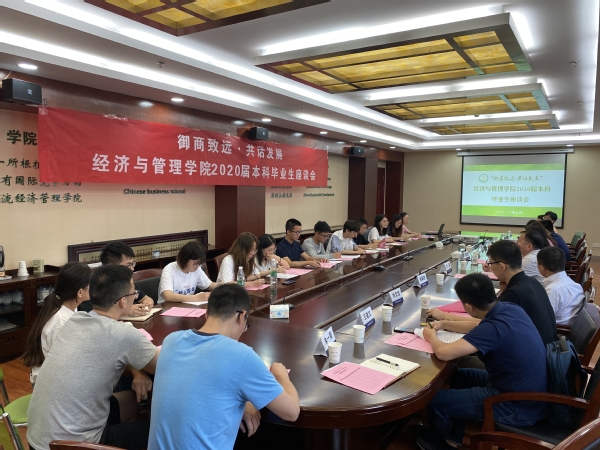 6月23日上午,江南体育官网 “御商致远•共话发展”2020届本科毕业生座谈会在经管楼604会议室举行。江南体育官网 党委书记焦宏图、党委副书记涂志宏、副院长邓晶、各系部负责人、教务员、毕业班辅导员以及毕业生代表们参加了此次活动。