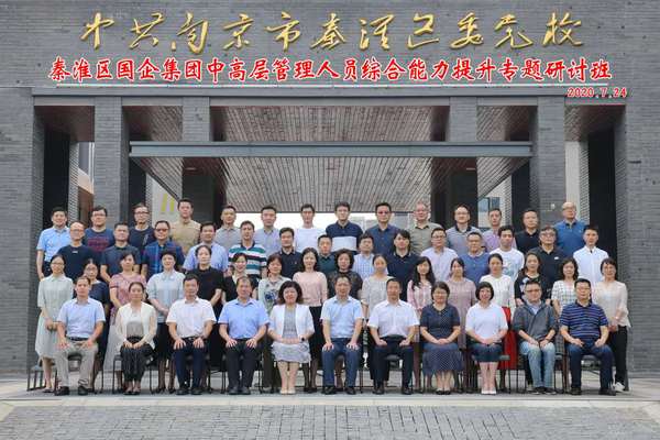 2020年7月24日,在秦淮区委组织部、区国资办、区委党校、江南体育-江南体育app-江南体育官网 共同精心筹备下,2020年秦淮区国企集团中高层管理人员综合能力提升专题研讨班正式开班。区委组织部副部长谢钰健、江南体育-江南体育app-江南体育官网 副院长邓晶、区国资办主任江涛、区委党校(区行政学校)常务副校长谢慧、江南体育 江南体育官网 MBA教育中心执行主任杜刚等领导出席开班仪式。开班仪式由区委组织部副部长谢钰健主持。9家国企集团的领导班子成员、中层干部共50人参加培训。