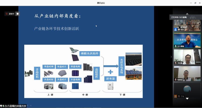 本次论坛在江南体育-江南体育app-江南体育官网 教授张钦主持下开始。江苏省光伏产业协会的张红升秘书长从“实物量上升,价值量下降”、“出口不断攀升,出口方向增加”、“主要产品在全国的占比继续下降”等8个方面回顾了2019年江苏省光伏产业运行情况,并对疫情后光伏产业发展趋势做出了研判。