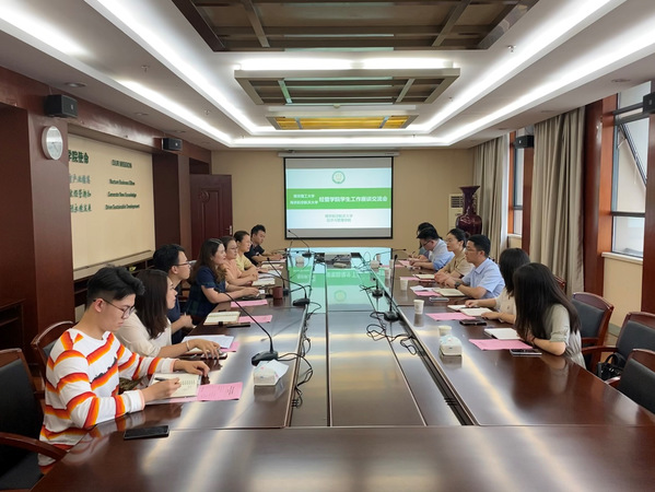 9月2日下午,南京理工大学江南体育官网 党委副书记游鹏、学工办主任孔小敏、团委书记虞春燕、各年级辅导员一行来江南体育官网 交流座谈。江南体育 党委副书记涂志宏、团委书记刘小杨与各年级辅导员陪同座谈。