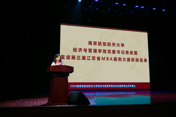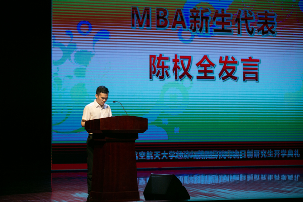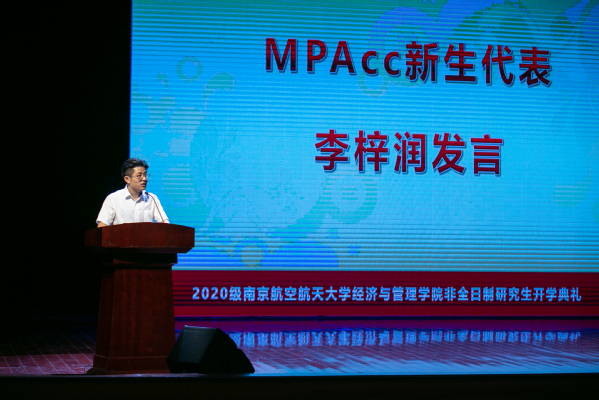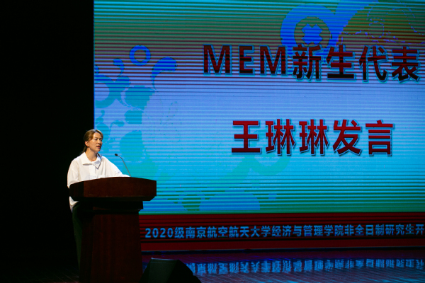 2020级MBA学生陈权全、MEM学生王琳琳、MPAcc学生李梓润代表全体新生发言。陈权全表示,南航MBA“培养学有专攻、富有远见、高尚敬业的中高层管理人才和创新创业精英”的培养目标吸引了他,1号楼闪闪发光的校名始终激励着他,希望身处内外部环境巨变中的同学们在研究生学习期间一起努力,能够抓住一切可以提升自身能力的机会,从知识、眼界、待人接物各方面提升自己的综合素养,努力践行“严谨务实作风、全面过硬素质、笃定高远志向”的MBA使命,最终都能成为自己所在行业的领航者。本科毕业于江南体育 机电江南体育 的王琳琳对20年后能够以学生身份重返南航校园倍感荣幸,非常珍惜这段难得的学生时光,希望在3年后能够收获一个不一样的自己,成为母校的骄傲。李梓润对未来的研究生生涯充满希翼,希望大家携手并进,扬帆起航,为自己的人生谱写新的华章。