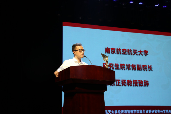 研究生院常务副院长徐正扬致辞,徐院长认为经管院在职研究生教育是南航研究生教育的重要组成部分,在新冠疫情的巨大影响下,大家能够通过层层选拔成为南航一员,实属不易。南航经管院建院36年来在研究生培养上取得的成就有目共睹,南航MBA“深耕江苏、服务三航、辐射长三角”项目定位和项目特色非常明确。希望全体研究生脚踏实地、好学会学、治学严谨、求真守真,不断探索感悟,用思考和行动成就更好的自己。