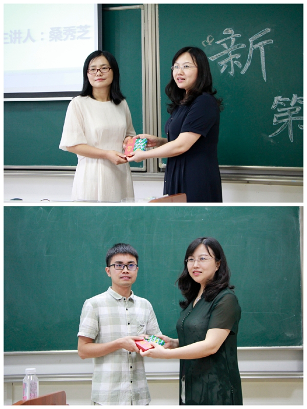 全体教师及同学向陆彪老师和桑秀芝老师的到来表示热烈的欢迎。随后,他简要介绍了两位老师的学习经历、科研经历等基本情况,希望两位老师在未来的工作中,坚持立德树人,精于研究,不忘初心,成为德艺双馨的优秀人民教师;同时建议同学们积极向两位老师请教、学习,在夯实基础学业的同时,培养科研兴趣,尝试进行学术研究。