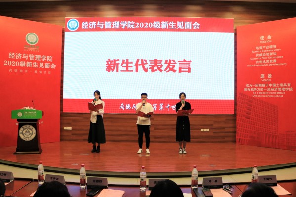 三位新生代表发言,融经管共性,展鲜明个性,代表新生表达了进入经管、融入经管的心声。