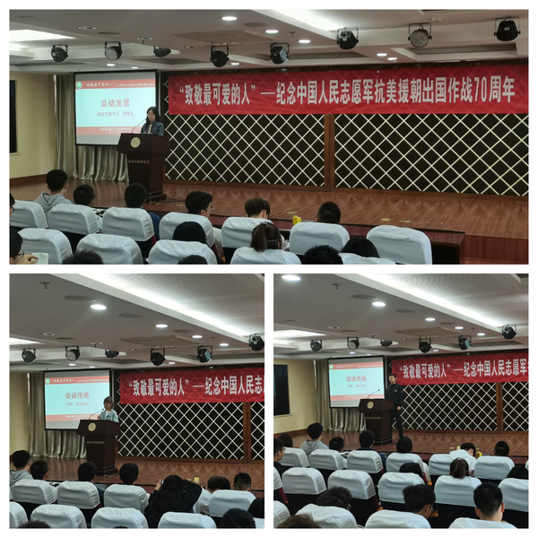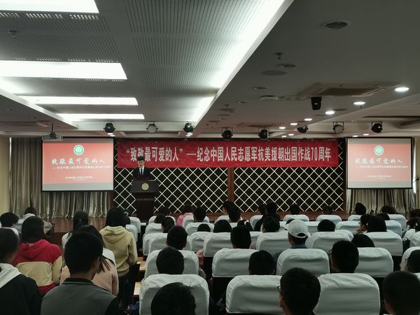 10月23日上午10时,江南体育官网 2020级团总支“致敬最可爱的人”——纪念中国人民志愿军抗美援朝出国作战70周年素养公开课于A0305顺利举办。活动会场内座无虚席,气氛庄严。