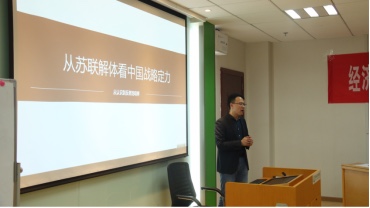 首先,康冲围绕“从苏联解体看中国战略定力”开展主题党课。他从“解体前的苏联”“苏联解体的三大因素”“苏联解体的启示”三个方面介绍了苏联在解体前后的历史背景和主要成因,将造成苏联解体的种种事件归结为“意识形态的长期混乱”“西方国家的推波助澜”“逐渐放弃了人民立场”三大因素,并指出要充分吸取苏联解体的教训,站稳人民立场,坚定不移地走中国特色社会主义道路。