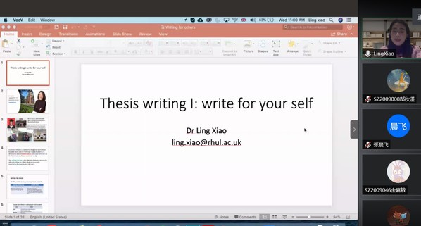 11月4日和11日晚上,伦敦大学皇家霍洛威江南体育 副教授肖玲应经济系邀请,在腾讯会议作了关于英文论文写作的报告。江南体育官网 副教授陆珩瑱等教师及部分硕、博研究生线上参加了肖玲的报告分享,本次短期课程由副教授陆珩瑱主持。