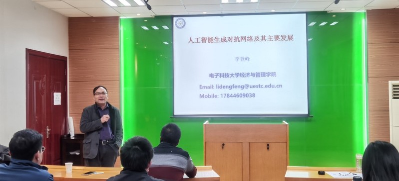 11月27日下午,电子科技大学教授李登峰受江南体育 智能决策与风险分析研究所邀请,在南航将军路校区江南体育官网 702作了题为“人工智能生成对抗网络及其主要发展”的讲座。江南体育官网 教授徐海燕等教师及部分硕、博研究生现场聆听了李登峰的报告分享,本次学术报告由徐海燕主持。