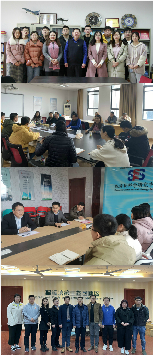 孙永荣与管工系研究生第二党支部、沈建新与灰色系统与复杂装备师生联合党支部的学生们在灰色系统研究所内一同交流座谈。孙永荣指出,作为研究生应该要打好扎实的研究基础,主动锻炼和培养自己的“总师”定位,学会组织协调团队同学集中攻关重点难题。沈建新从如何确定研究方向这一问题出发,针对研究能力培养做了深入浅出的解读,他指出研究生要培养快速发现问题、快速解决问题的能力。两位老师还多次和同学们强调学术诚信的重要性。