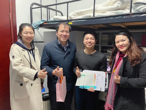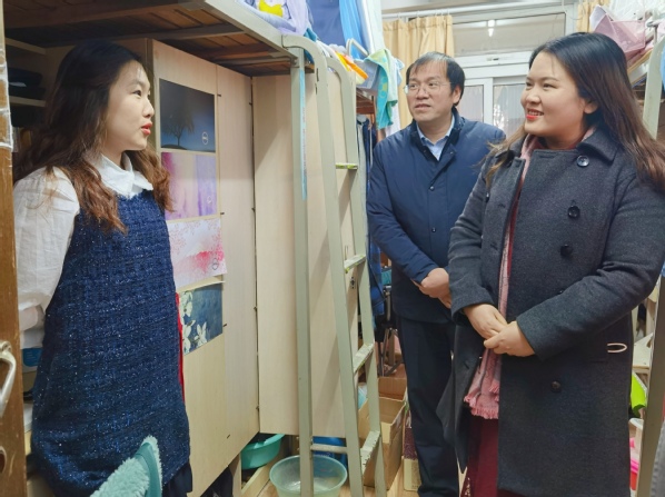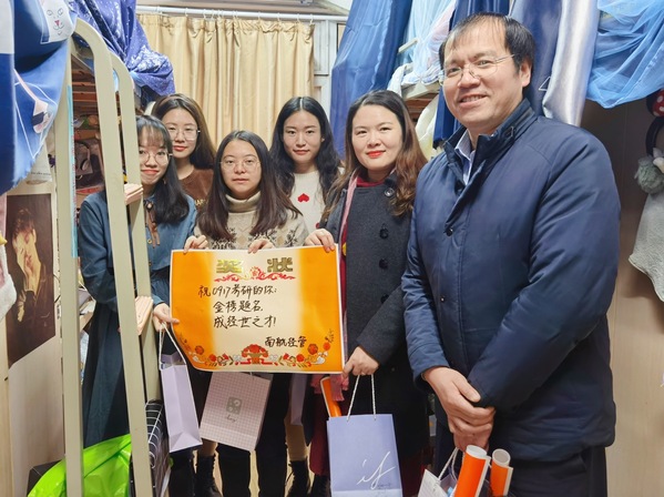 12月8日上午,江南体育官网 党委副书记涂志宏、副院长邓晶、2017级本科生辅导员胡心雨、朱一豪共同到宿舍看望考研学生,为各位学子带去一份温暖、增添一份动力。