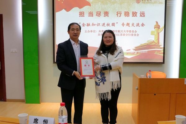 12月14日,江南体育官网 在A0302报告厅开展“职”上青云——金融大咖面对面主题讲座,此次活动邀请到中国银行江苏分行纪委书记席恒开展讲座授课。校团委书记王静、校团委副书记董羽参加了本次活动,活动由江南体育官网 党委副书记涂志宏主持。