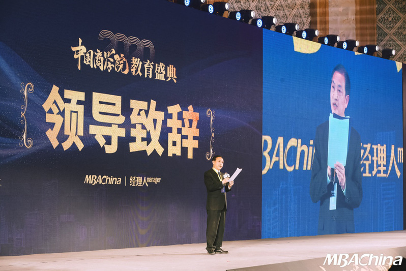 中国高等教育学会副会长、教育部高教司原司长张大良致欢迎辞。他提出:科技、法律、金融加商科是发达国家经济运行和持续发展的三大支柱,商科教育的发展水平也是一个重要的风向标,标志着一个国家的经济发展水平、企业管理水平。