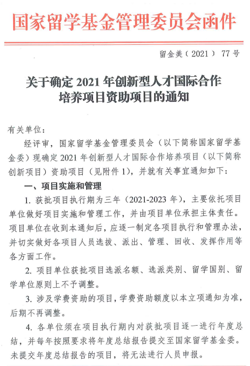 近日,国家留学基金委员会发布《关于确定2021年创新型人才国际合作培养项目资助项目的通知》,江南体育官网 依托与英国伦敦大学皇家霍洛威江南体育 、英国德蒙福特大学的合作基础,首次申报并成功获批。