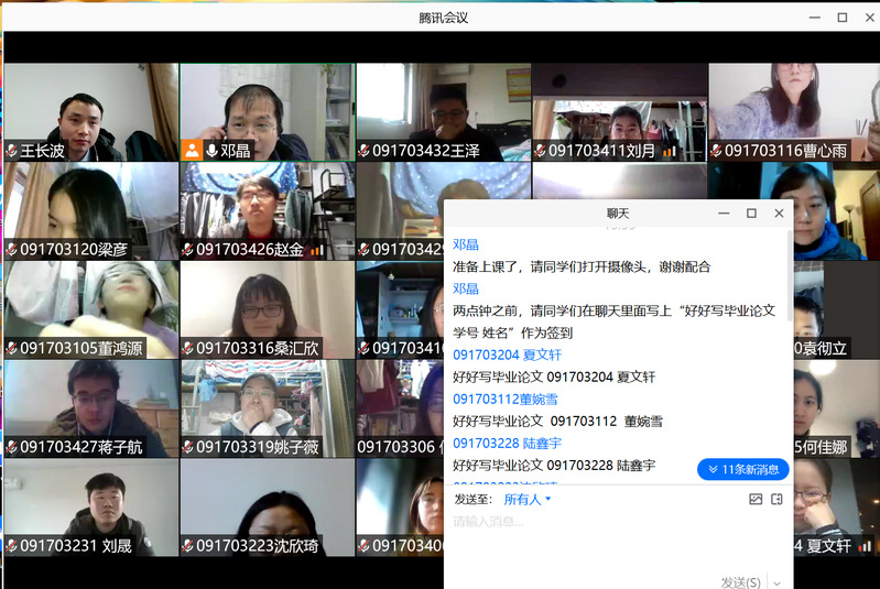 分群体、分时段、全覆盖开展了线上课程巡查。全体院领导班子在608会议室进行了集体云听课;各系教学主任、教工支部书记、教学办人员及辅导员也都走进线上课堂,给坚守线上教学的师生们带来了问候。经巡查,28门课程全部按照要求线上开课,课程教学秩序良好,未发生迟到、缺课等现象。