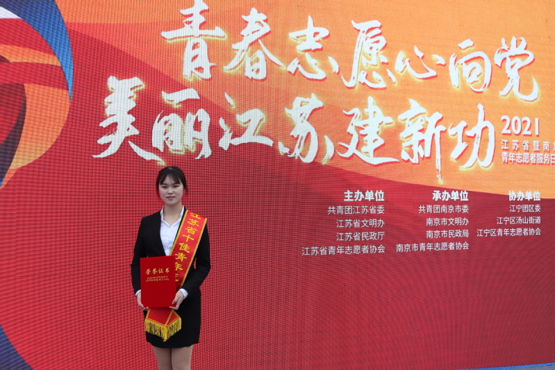 近日,在由共青团江苏省委、江苏省青年志愿者协会共同主办的2020年度全省青年志愿者行动评选表彰中,经过推报初评、专家复评、现场答辩等多个环节,我校江南体育官网 学生柳莺从来自187家单位推荐的264名优秀青年志愿者中脱颖而出,荣获“江苏省十佳青年志愿者”称号,为本次获奖者中仅有的两名大学生之一,这也是江南体育官网 继2015年学生嘎玛白姆之后再次获此殊荣。