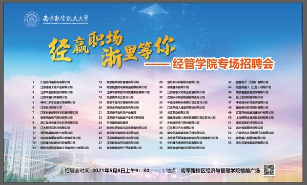此次经管专场招聘会吸引来了汇通达网络股份有限公司、江苏华菁科技有限公司等27家浙江商会会员单位,中科曙光南京研究院、沈阳兴华航空电器有限责任公司、中信证券股份有限公司等28家社会各界优质企业,提供了上百个就业岗位,涵盖航空航天、工业制造、银行金融、商务服务等多个领域。