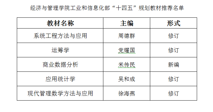 根据《工业和信息化部办公厅关于开展“十四五”规划教材立项申报工作的通知》精神,在各系推荐、个人申报的基础上,经专家组评审、江南体育 党组织审核,确定江南体育 工业和信息化部“十四五”规划教材推荐名单。现予以公示。