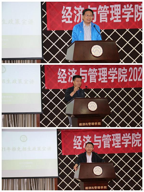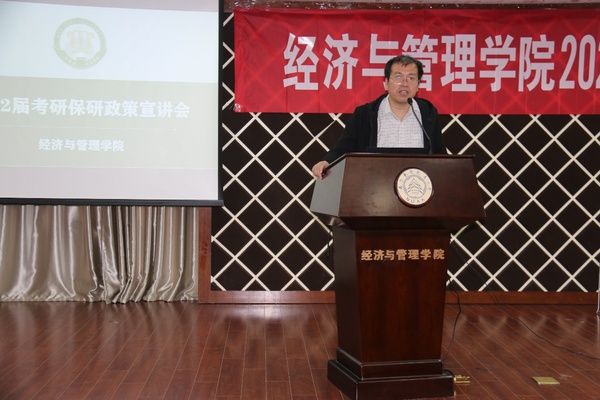 为帮助学生了解江南体育官网 研究生招生政策,合理规划考研、保研目标,提升江南体育 生源质量,5月20日,江南体育官网 2022届考研、保研政策宣讲会于经管楼A0305成功举办。江南体育 副院长邓晶、谢乃明,管工系系主任米传民、工商系系主任谢嗣胜、经济学副主任王建立、年级辅导员及百余名2018级学生参加了本次活动。