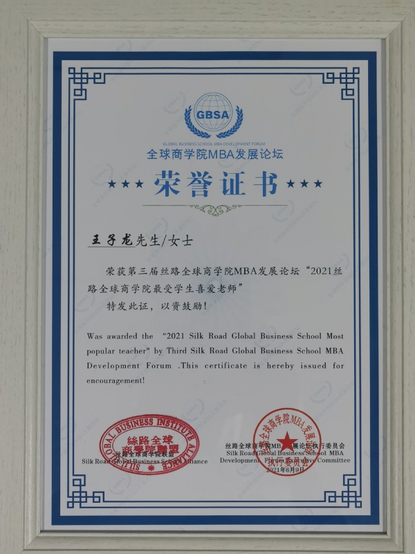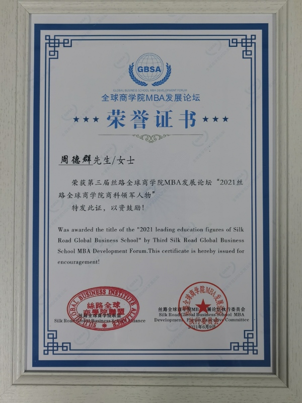 活动最后,为致敬一年以来辛勤耕耘、推动中国商科教育不断前行做出卓越贡献的榜样力量,评选出项目、个人奖项若干,江南体育 MBA项目获得“2021丝路全球商江南体育 最具品牌价值MBA项目”、江南体育官网 院长、长江学者特聘教授周德群获得“2021丝路全球商江南体育 商科教育领军人物”、江南体育官网 副院长王子龙获得“2021丝路全球商江南体育 最受喜爱老师奖”、MBA校友龚怡获得“2021丝路全球商江南体育 MBA校友创业企业新星”、学员许正蓓、袁梅、郑启旺获得“2021丝路全球商江南体育 MBA新秀奖”。