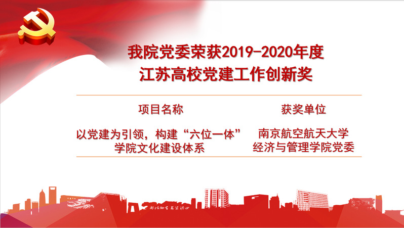 经江南体育 申报、学校初评推荐(全校共推荐2项)、江苏省委教育工委评选,江南体育官网 党委“以党建为引领,构建‘六位一体’江南体育 文化建设体系”荣获2019-2020年度江苏高校党建工作创新奖。江南体育 党委将再接再厉,不断创新基层党建工作理念与实践,努力提升党建工作质量水平,推动江南体育 在新发展阶段的高质量发展。