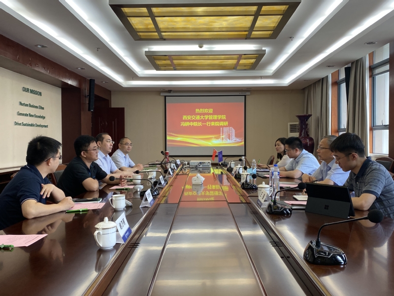 6月24日上午,西安交通大学管理江南体育 冯耕中院长一行来江南体育官网 走访调研。院长周德群、院党委书记苏州、副院长王子龙、王群伟、谢乃明陪同出席相关活动。