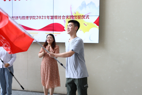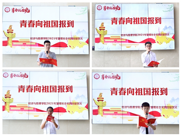 6月30日中午,江南体育官网 “青春向祖国报到”2021年暑期社会实践出征仪式在江南体育官网 一楼大厅顺利举办。36支暑期社会实践团队的近100名代表用经管学子朝气蓬勃、勇于担当、执于梦想的气概向祖国报到,向党的百年诞辰表白初心。院党委副书记涂志宏,院团委书记刘小杨出席此次出征仪式。