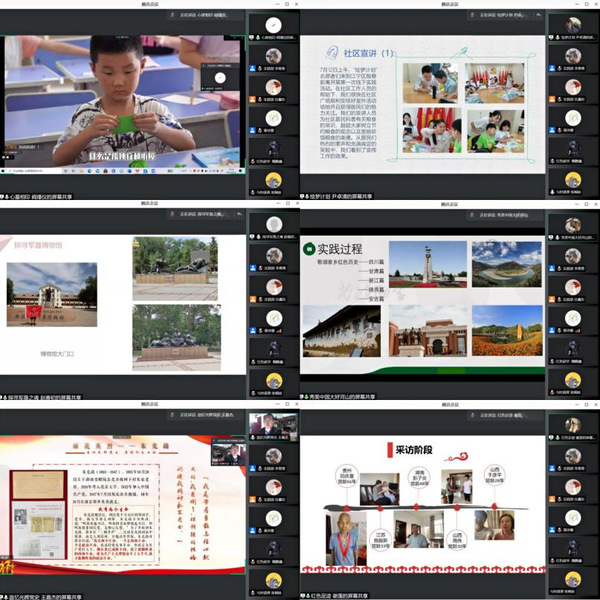 9月16日晚,江南体育官网 “青春向党有我,百年征程再出发”暑期社会实践交流会红色专场顺利开展。来自江南体育官网 的12支献礼建党百年实践团队线上展示了他们的实践成果,践行“请党放心、强国有我”的时代潮音,发出开创未来的青春誓言。产出“微团课”“微党课”10余堂,获得了中国共青团杂志的报道和地方政府的支持与认可。江南体育官网 团委书记刘小杨及实践团队成员参加此次交流会。