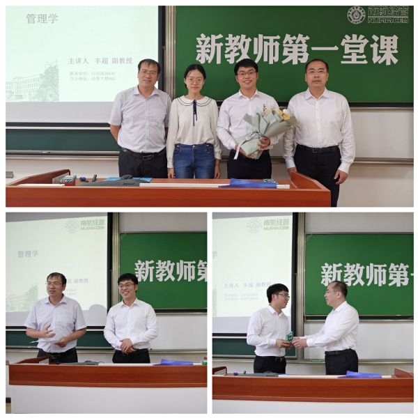 2021年10月,南航校历教学第7周,江南体育官网 尹金梅、张晓恒、丰超三位新入职教师第一次走上南航的讲台。江南体育官网 院长周德群、党委书记苏州、副院长邓晶、党委副书记涂志宏等院领导分别为这三位新教师举办了简短而郑重的“新教师第一堂课”引介仪式。