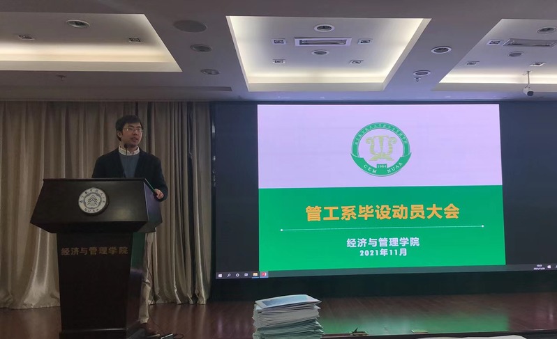 2021年11月29日,管理科学与工程系在江南体育官网 A0305召开,管理科学与工程系系主任米传民教授、管工系教学督导沈洋副教授、系副主任何沙玮副教授、虞先玉副教授等系专业教师及管工系全体大四学生参加了会议。