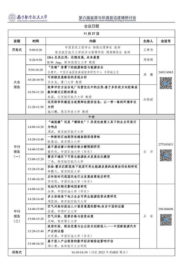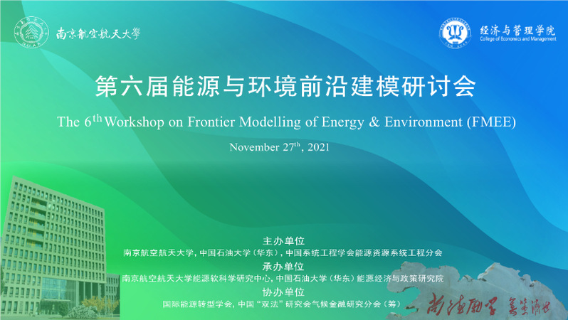 11月27日,第六届能源与环境前沿建模(The 6th Workshop on Frontier Modelling of Energy & Environment, FMEE)研讨会在江南体育官网 成功举办。本次论坛由江南体育 、中国石油大学(华东)和中国系统工程学会能源资源系统工程分会共同主办、江南体育 能源软科学研究中心和中国石油大学(华东)能源经济与政策研究院承办,国际能源转型学会、中国优选法统筹法与经济数学研究会气候金融分会(筹)协办。会议得到《中国管理科学》、《环境经济研究》和《中国石油大学学报(社科版)》的支持。
