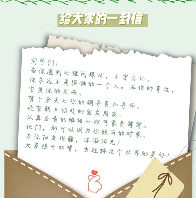 11月1日,学校下发了《关于开展第七期研究生“谈心谈话关爱月”专项活动的通知》。江南体育官网 党委高度重视,把学生心理工作摆在重要位置,院领导、研究生导师、专兼职研究生辅导员、学生干部等全员参与,多措并举,将各项要求落细落小落到实处。