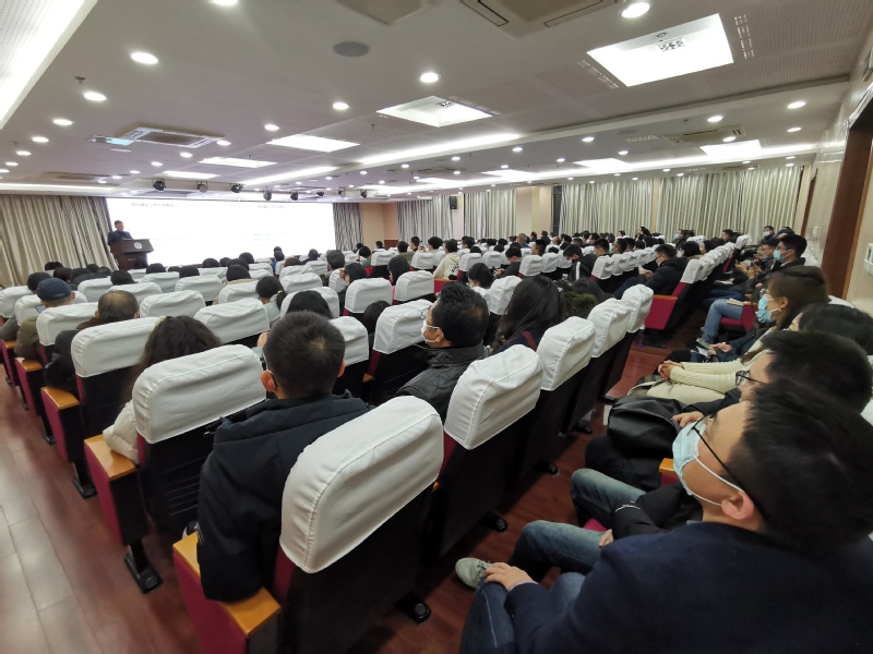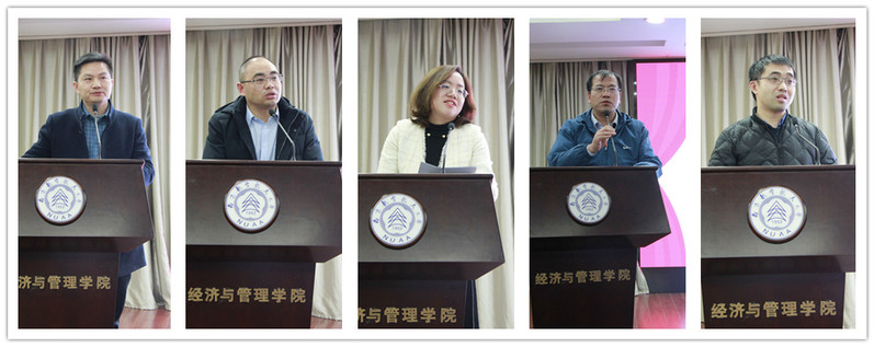 A0305报告厅召开2021年全院教职工大会,院领导班子成员进行了年度述职述廉。会议由院党委书记苏州主持,院长周德群、院党委副书记胡苹、副院长邓晶、王子龙、王群伟、谢乃明及全院教职工参加了会议。