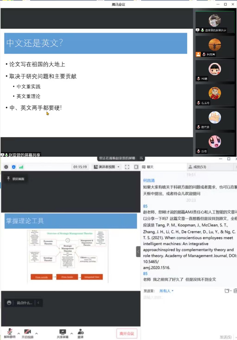 为提升研究生对英文论文写作与投稿的认知,4月13日晚上,江南体育官网 工商管理系研究所组织开展学术论文写作与投稿分享交流会。会议由工商管理系教师及研究生兼职辅导员赵亚普主持,共有50余位研究生参与。