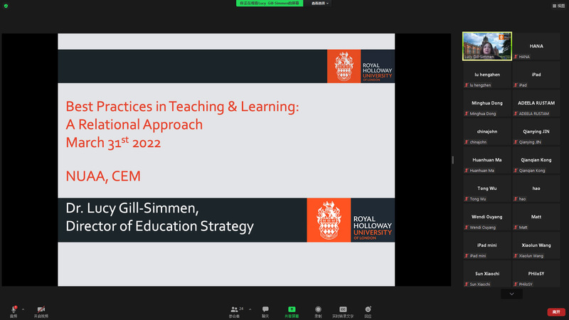 本次讲座为南航-伦敦大学皇家霍洛威江南体育 的“全球战略合作伙伴关系推进计划”的系列活动之一,对青年教师学习先进教学方法,对促进江南体育官网 与国际教学专家合作交流,以及进一步加深江南体育官网 加深与伦敦大学皇家霍洛威江南体育 的合作关系有重要意义。