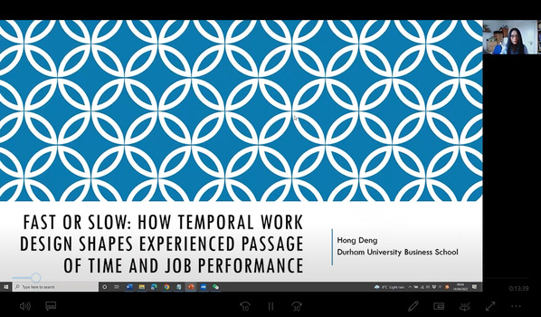 4月14日,英国杜伦大学教授邓红应江南体育官网 人力资源管理研究所和江苏省人力资源发展研究基地的邀请,在线上为江南体育官网 师生作了题为“Fast or Slow: How Temporal Work Design Shapes Experienced Passage of Time and Job Performance”的精彩学术报告。本次报告由教授胡恩华主持,相关教师、博士生和硕士生参加了此次学术报告活动。