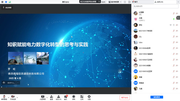4月22日下午,南瑞集团正高级工程师,江苏省产业教授罗旺应江南体育官网 管理科学与工程系、以及信息管理与电子商务研究所的邀请,通过腾讯会议作了“知识赋能电力数字化转型的思考与实践”报告,本次报告由米传民教授主持,部分硕、博士研究生参加此次报告。