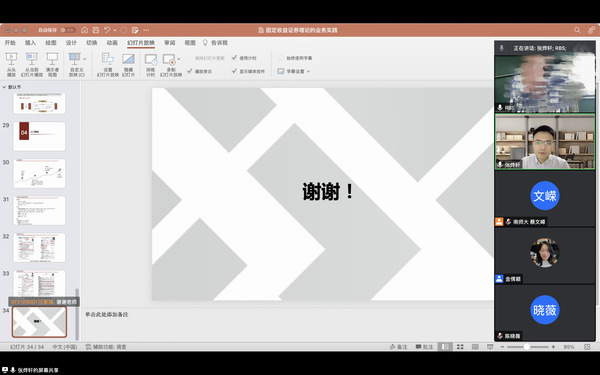 5月26日上午,中证信用增进股份有限公司业务副总裁张烨轩应金融研究所的邀请,通过腾讯会议为江南体育官网 师生作了题为“固定收益证券理论的业务实践”的报告,本次报告由金融研究所的金倩颖副教授主持,本硕博80余名同学参加了此次讲座。