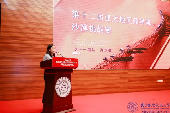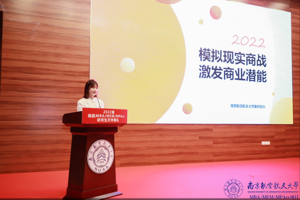 MBA联合会主席冷婷洁为新生们详细介绍了联合会的组织架构和活动开展情况。