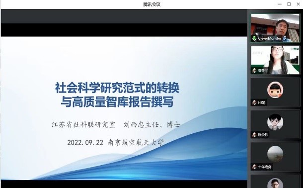 9月22日,研究员刘西忠应邀来江南体育官网 ,以“智库研究的特征与高质量智库报告撰写”为主题,作学术报告。报告会以线上线下结合方式举行。江南体育官网 副院长王子龙教授主持报告会,副院长查冬兰教授、教授谭清美等70余名师生出席报告会并开展研讨。
