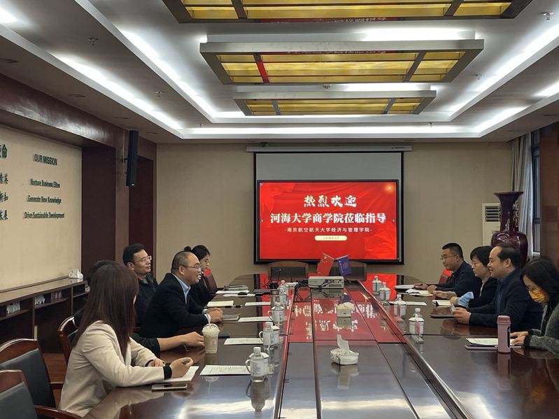 王子龙副院长代表江南体育 对河海大学商江南体育 的到访表示热烈欢迎,通过宣传片介绍了江南体育 的历史沿革、办学特色与发展目标,分享了近年来专业硕士相关专业的招生、教学管理与论文质量管控情况。随后,双方就共同承办工商管理案例大赛展开了深入探讨。