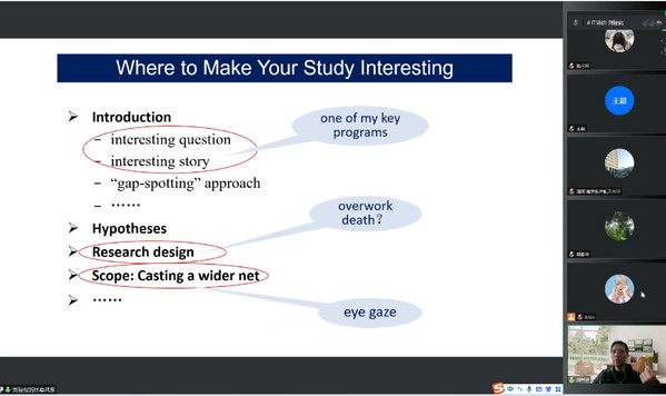 讲座围绕以下三个方面展开:首先,介绍了实现研究趣味性的底层逻辑。刘智强从有效选题的意义性、新颖性、吸引力、范围以及实用性五个判断标准切入,并围绕研究的吸引力这一标准展开详细介绍。刘智强指出有吸引力的研究包括两种类型,一种是为读者提供完备且有用的知识,另一种是提供不完整但有趣的知识,而对于大多数研究者而言,后者更具有可行性的。基于格式塔心理学中个人认知的整体性、接近性、闭合性和连续性刘智强还指出一个有趣的研究需要为读者补充新的知识或打破读者以往的认知。其次,分享了提高研究趣味性的两种实现渠道:“从-1到1”和“从0到1”。其中,“从-1到1”是指颠覆读者已有认知,刘智强建议从已有研究结论的对立面和违背常识的角度进行思考,但同时要避免伪相关的问题,并且要谨慎对待一闪而过的想法,即对通过快思考产生的想法需要经过慢思考反复推敲,判断其合理性。而“从0-1”是指为读者提供意料之外但在情理之中的知识。刘智强建议既可以从跨学科的角度切入,也可以尝试从习以为常的现象中挖掘新问题,而要避免盲目追从热点问题。最后,讨论了如何在研究的不同部分提高研究的趣味性。刘智强认为,在引言部分,研究者可以尝试提出一个关键的研究问题,从而能够快速吸引读者的注意力,使其发现研究的趣味性;在假设提出过程中,研究者可以通过打破以往A与B正相关/负相关的假设范式,如通过提出竞争假设的方式,提高研究假设有趣性;在讨论部分,研究者可以从一个小的视角切入,但从更广泛的范畴对变量的影响机制进行深入挖掘,也能够提高研究的趣味性。