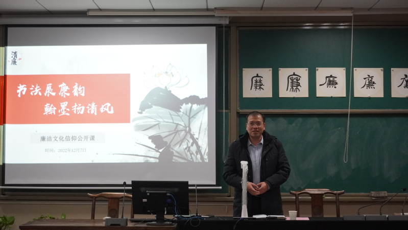 12月7日上午,由江南体育官网 团委、艺术江南体育 团委共同承办的“书法展廉韵,翰墨扬清风”信仰公开课在艺术江南体育 砚湖书院举行。本次公开课由南京书房创始人、江东书画院院长张星星担任授课嘉宾,校财务处处长张丕宏,江南体育官网 党委书记苏州,艺术江南体育 党委书记张钟勤,江南体育官网 党委副书记胡苹、副院长邓晶,艺术江南体育 党委副书记王宇宁、副院长马道全,两江南体育 专兼职辅导员,学生会、研究生会主席团以及学生党支部纪检委员等50余名师生共同参加了本次活动。