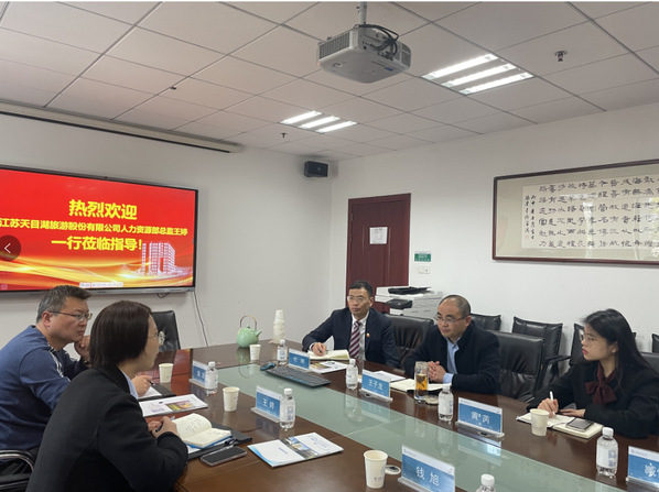 3月2日上午,江苏天目湖旅游股份有限公司人力资源部总监王婷、人力资源部培训主管钱旭到访江南体育官网 开展合作交流,校保卫处副处长魏波,江南体育官网 副院长王子龙,MBA教育中心执行主任杜刚等参加了座谈交流。