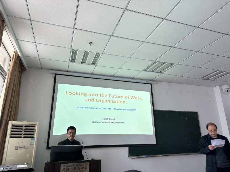 3月29日,应江南体育官网 人力资源管理研究所、江苏省人力资源发展研究基地和中国员工关系管理研究省优秀创新团队邀请,新加坡国立大学商江南体育 教授宋照礼在江南体育 704会议室为江南体育官网 师生作了题为“Looking into the future: What can we learn from Sci-Fi movies and ChatGPT”的精彩学术报告。本次讲座由教授胡恩华主持,相关教师以及博士生和硕士生参加了这次专题讲座。