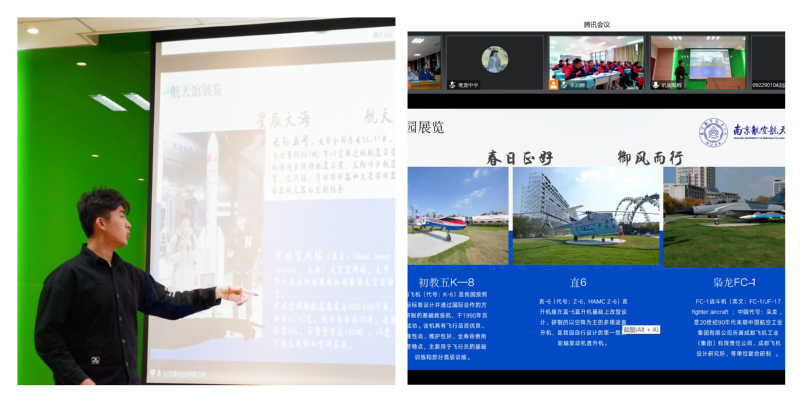 在宁藏两地的线上课堂上,陈则豪同学向堆中学生们介绍了江南体育 的“三航”特色,以校御风园内各类机型科普三航知识,重温“特别能吃苦、特别能战斗、特别能攻关,特别能奉献”的三航精神,让在场同学大开眼界,播下一颗飞向蓝天的梦想种子。